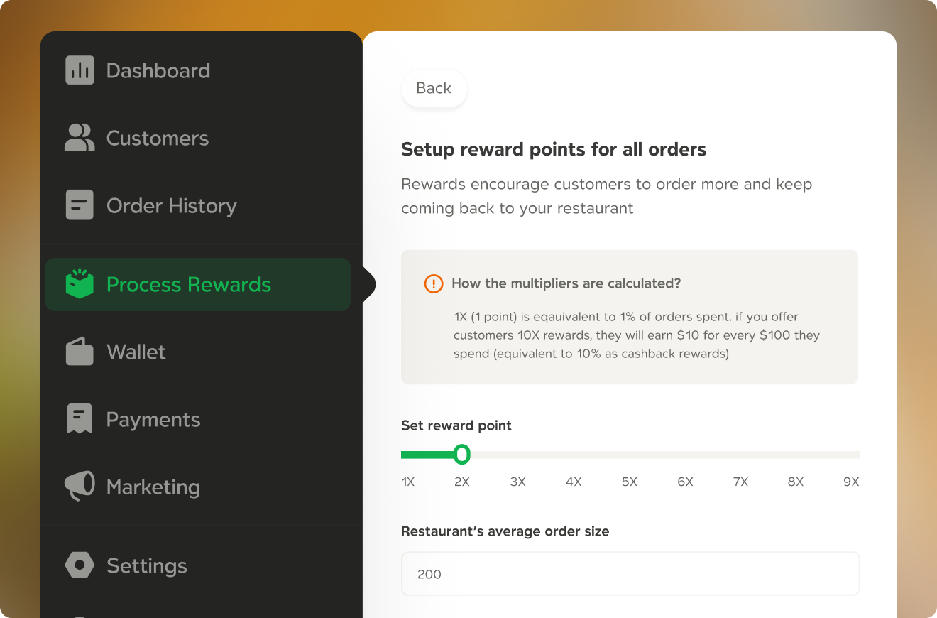 Configure your reward multipliers based on average order size.