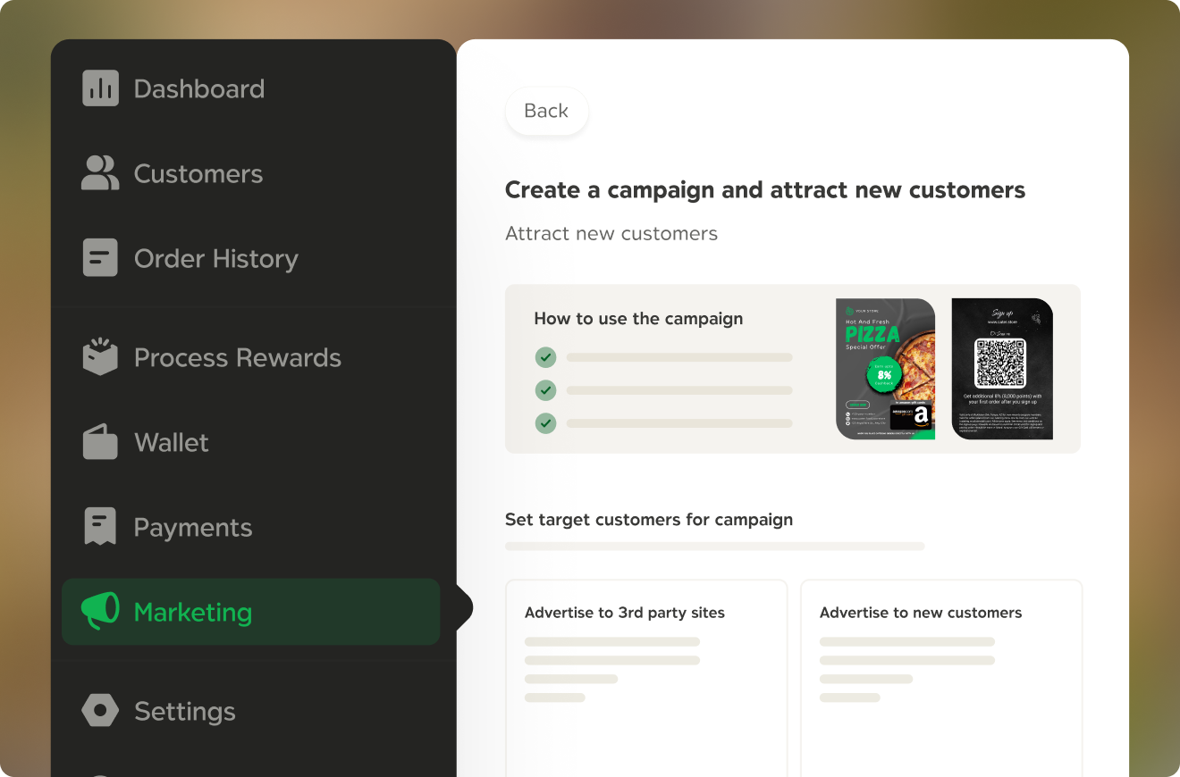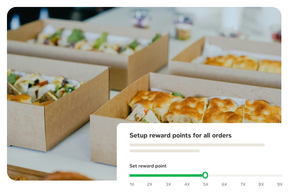 Set reward multipliers, minimum order thresholds, and earning rules that align with catering margins and customer value.